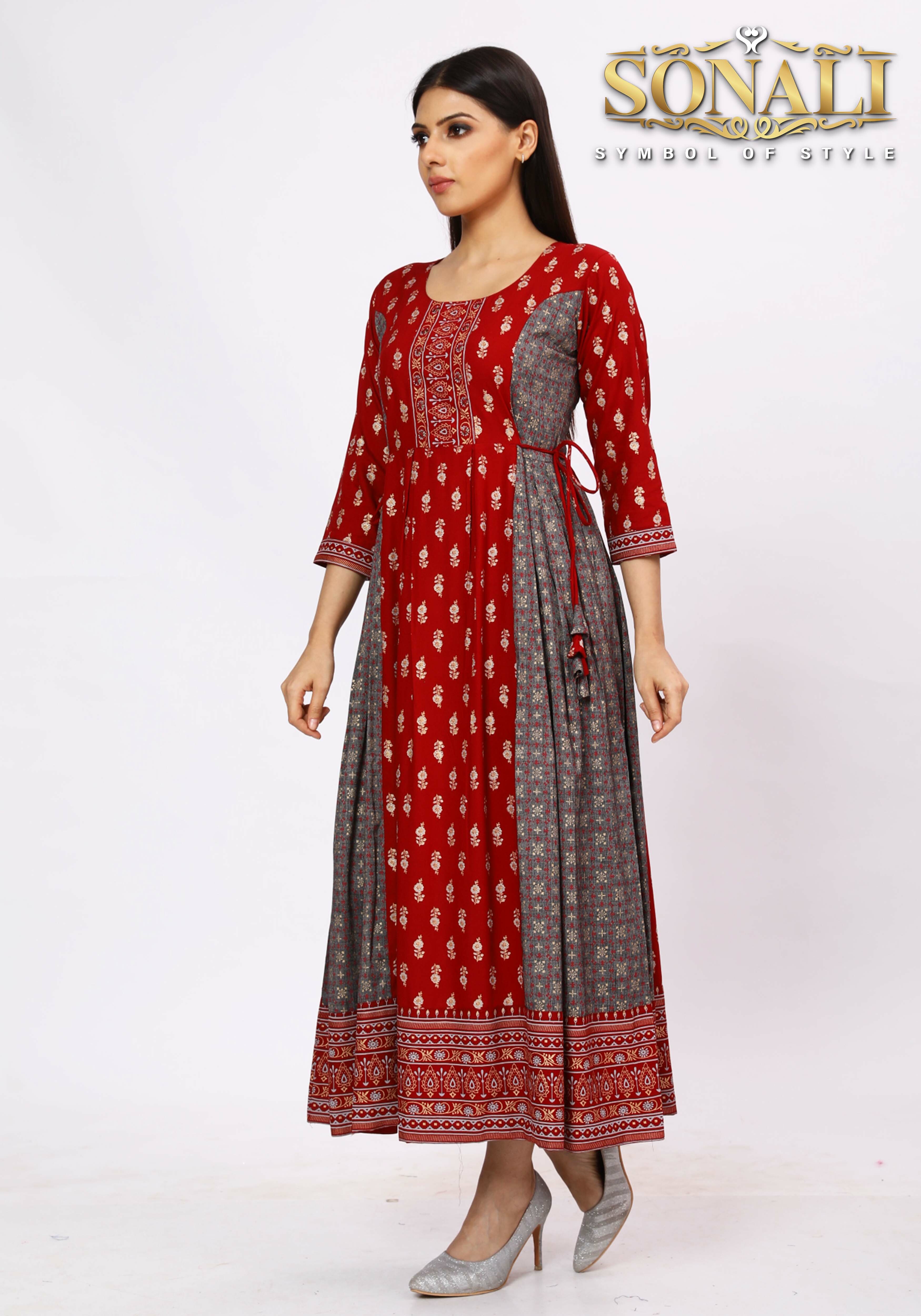 Introducing our latest Women's Long Dress collection! The New Arrival 2023 is here, and we are excited to present our Sonali Premier Long Dress Collection 2023 featuring the latest trends in fashion. Celebrate the season of lights with our Deepawali's Collection, made with premium quality fabric. The Women Top range is crafted with the finest fabrics and comes in a variety of styles and designs. Whether you prefer a classic look or a more modern, chic style, we have something for you. The New Collection 2023 is a must-have for anyone looking to stay on-trend. With our range of Shirts, Long Dress and Tops, you can complete any outfit effortlessly. This Collection is perfect for those looking to coordinate their outfits and create a cohesive look for family events or special occasions. All of our products are made with the highest quality materials, ensuring durability and comfort. Our attention to detail is what sets us apart from the rest, and we are proud to offer a diverse range of products that cater to every taste and style. Order now and experience the best of Online Fashion. Our collection is sure to impress, and we guarantee that you will love every piece. So why wait? Shop now and upgrade your wardrobe today!