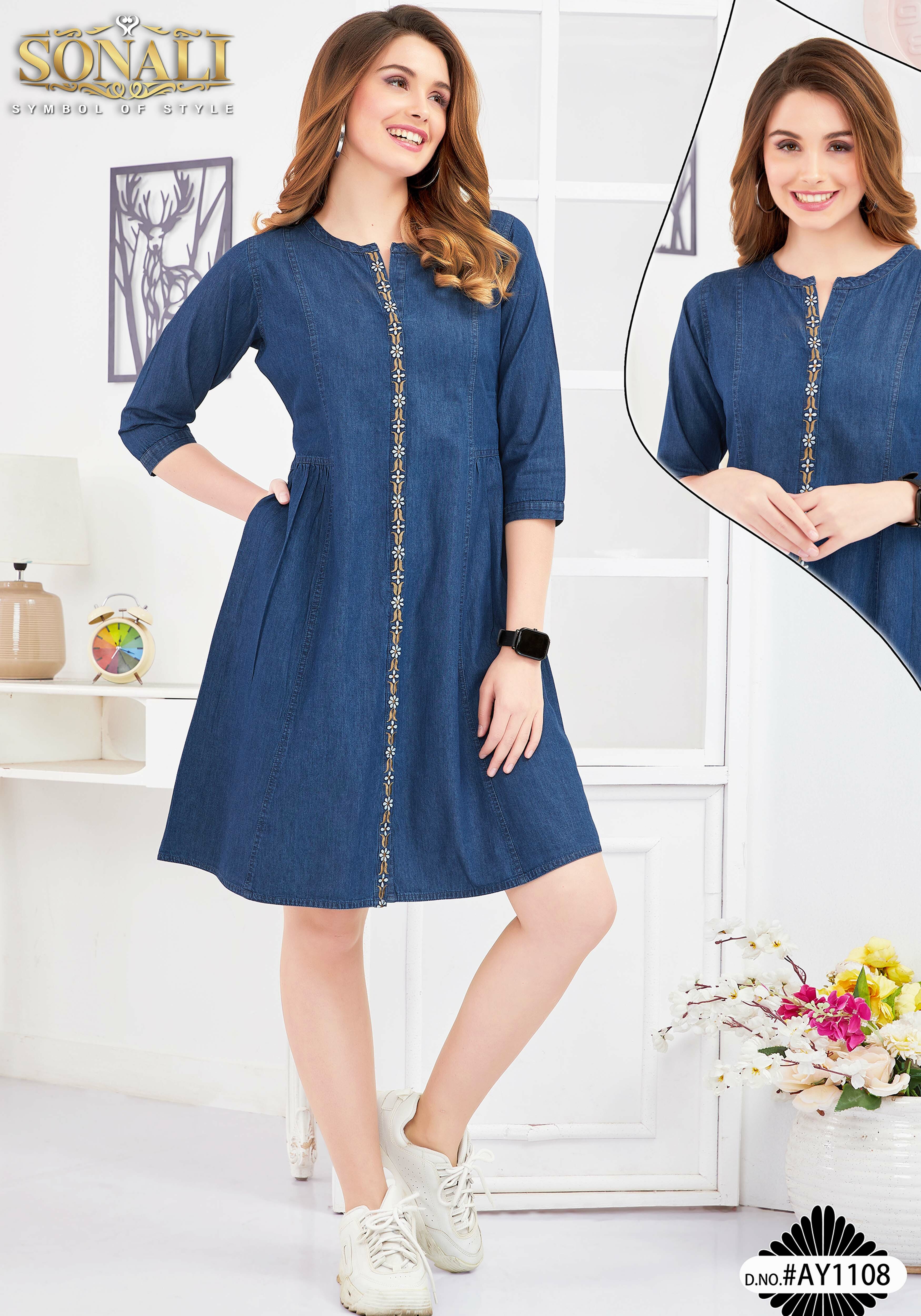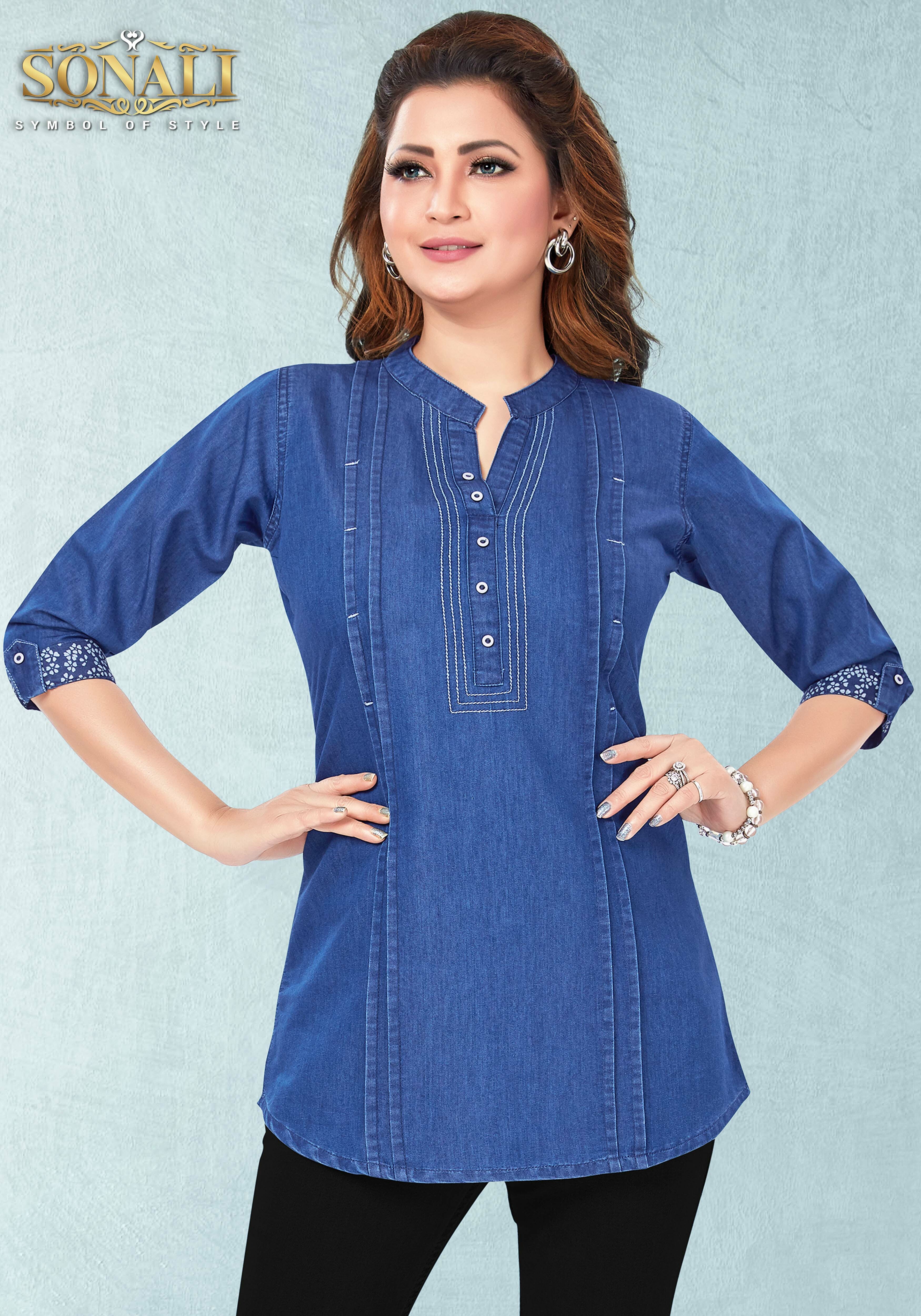 Introducing our latest Denim collection! The New Arrival 2023 is here, and we are excited to present our Sonali Premier Denim Collection 2023 featuring the latest trends in fashion. Celebrate the season of lights with our Deepawali's Collection, made with premium quality fabric. The Denim range is crafted with the finest fabrics and comes in a variety of styles and designs. Whether you prefer a classic look or a more modern, chic style, we have something for you. The New Collection 2023 is a must-have for anyone looking to stay on-trend. With our range of Women's Top, you can complete any outfit effortlessly. This Collection is perfect for those looking to coordinate their outfits and create a cohesive look for family events or special occasions. All of our products are made with the highest quality materials, ensuring durability and comfort. Our attention to detail is what sets us apart from the rest, and we are proud to offer a diverse range of products that cater to every taste and style. Order now and experience the best of Online Fashion. Our collection is sure to impress, and we guarantee that you will love every piece. So why wait? Shop now and upgrade your wardrobe today!