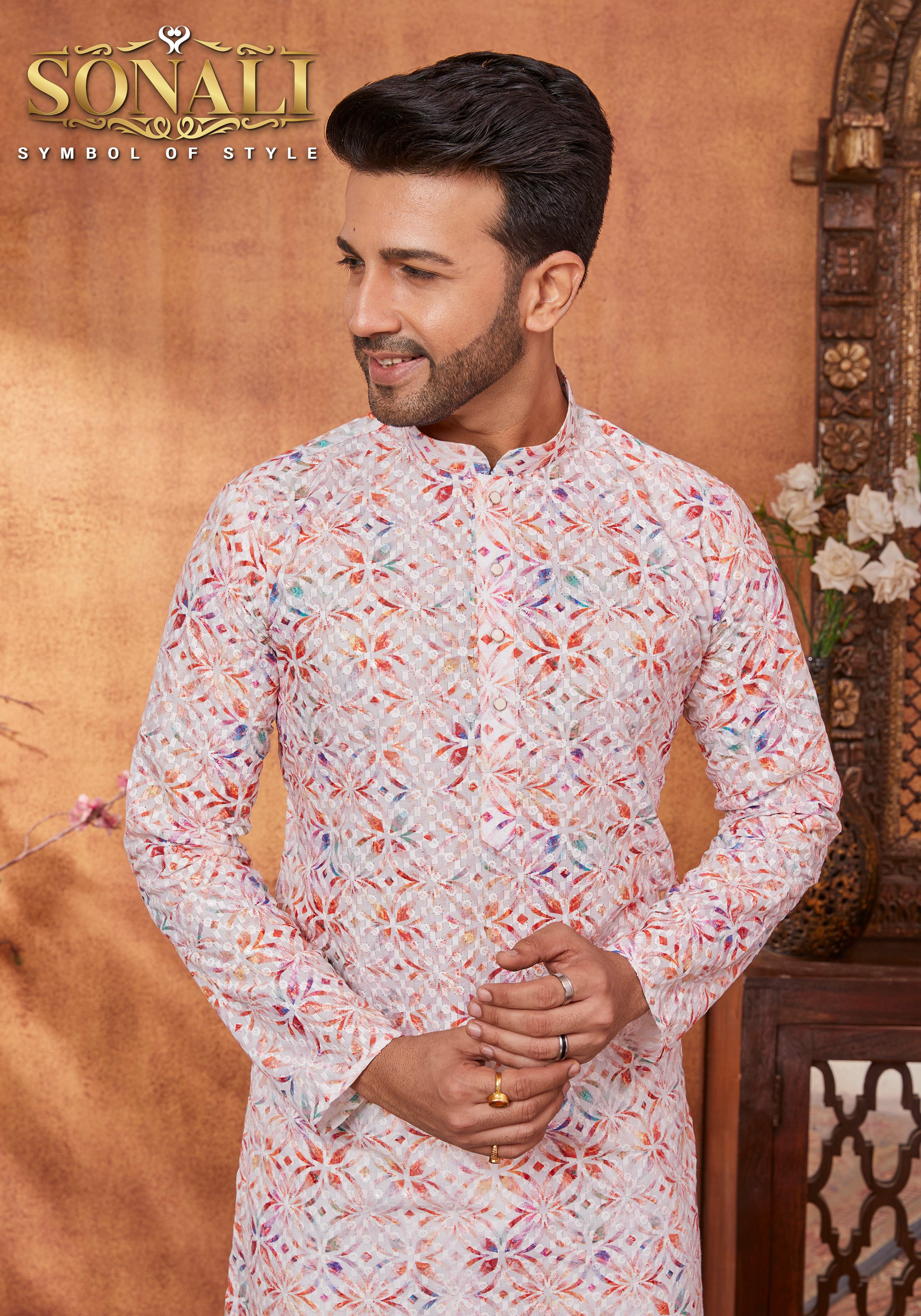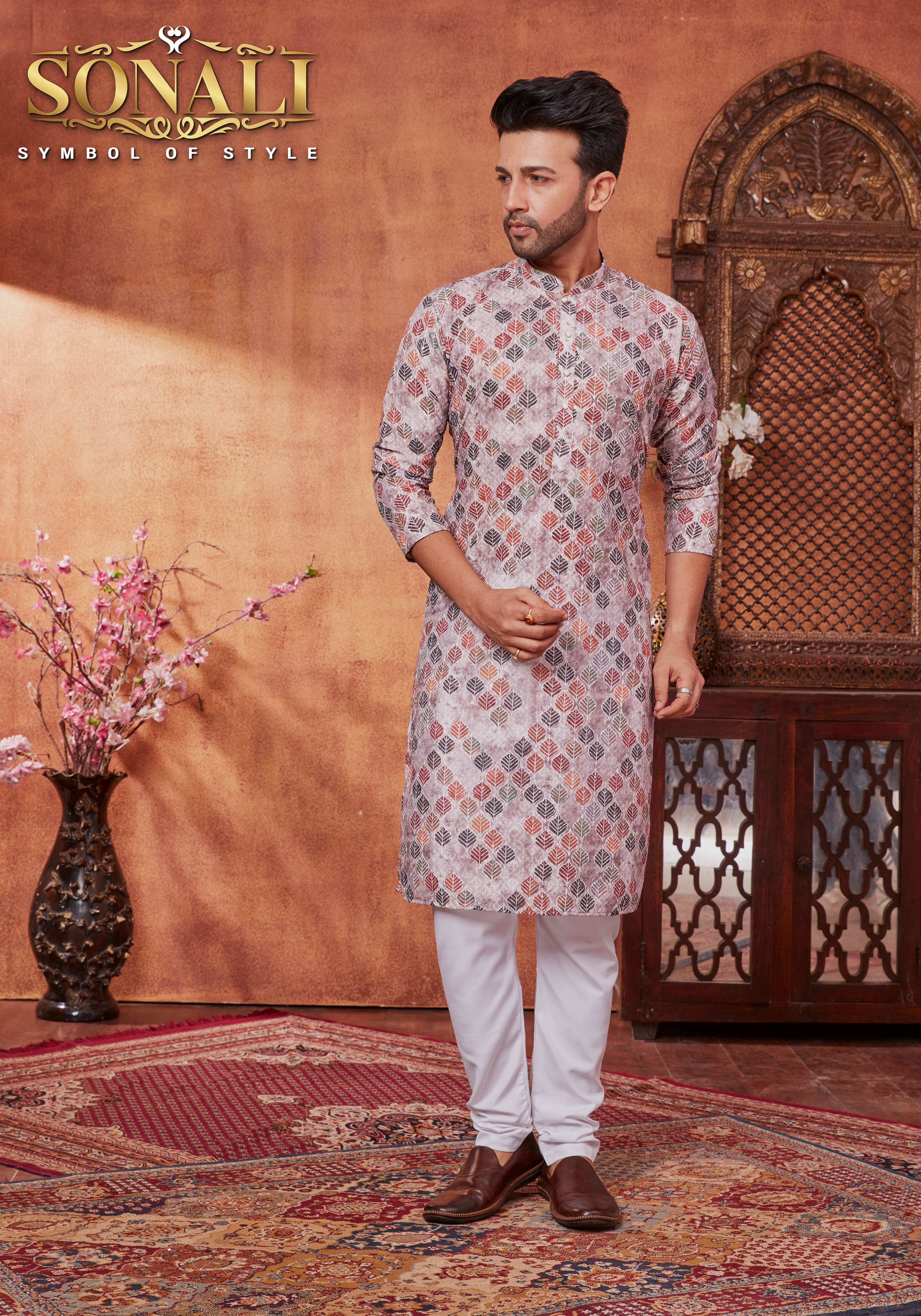 Introducing our latest Men's collection! The New Arrival 2023 is here, and we are excited to present our Sonali Premier Men's Collection 2023 featuring the latest trends in fashion. Celebrate the season of lights with our Deepawali's Collection, made with premium quality fabric. The Denim range is crafted with the finest fabrics and comes in a variety of styles and designs. Whether you prefer a classic look or a more modern, chic style, we have something for you. The New Collection 2023 is a must-have for anyone looking to stay on-trend. With our range of Men's Suit, you can complete any outfit effortlessly. This Collection is perfect for those looking to coordinate their outfits and create a cohesive look for family events or special occasions. All of our products are made with the highest quality materials, ensuring durability and comfort. Our attention to detail is what sets us apart from the rest, and we are proud to offer a diverse range of products that cater to every taste and style. Order now and experience the best of Online Fashion. Our collection is sure to impress, and we guarantee that you will love every piece. So why wait? Shop now and upgrade your wardrobe today!