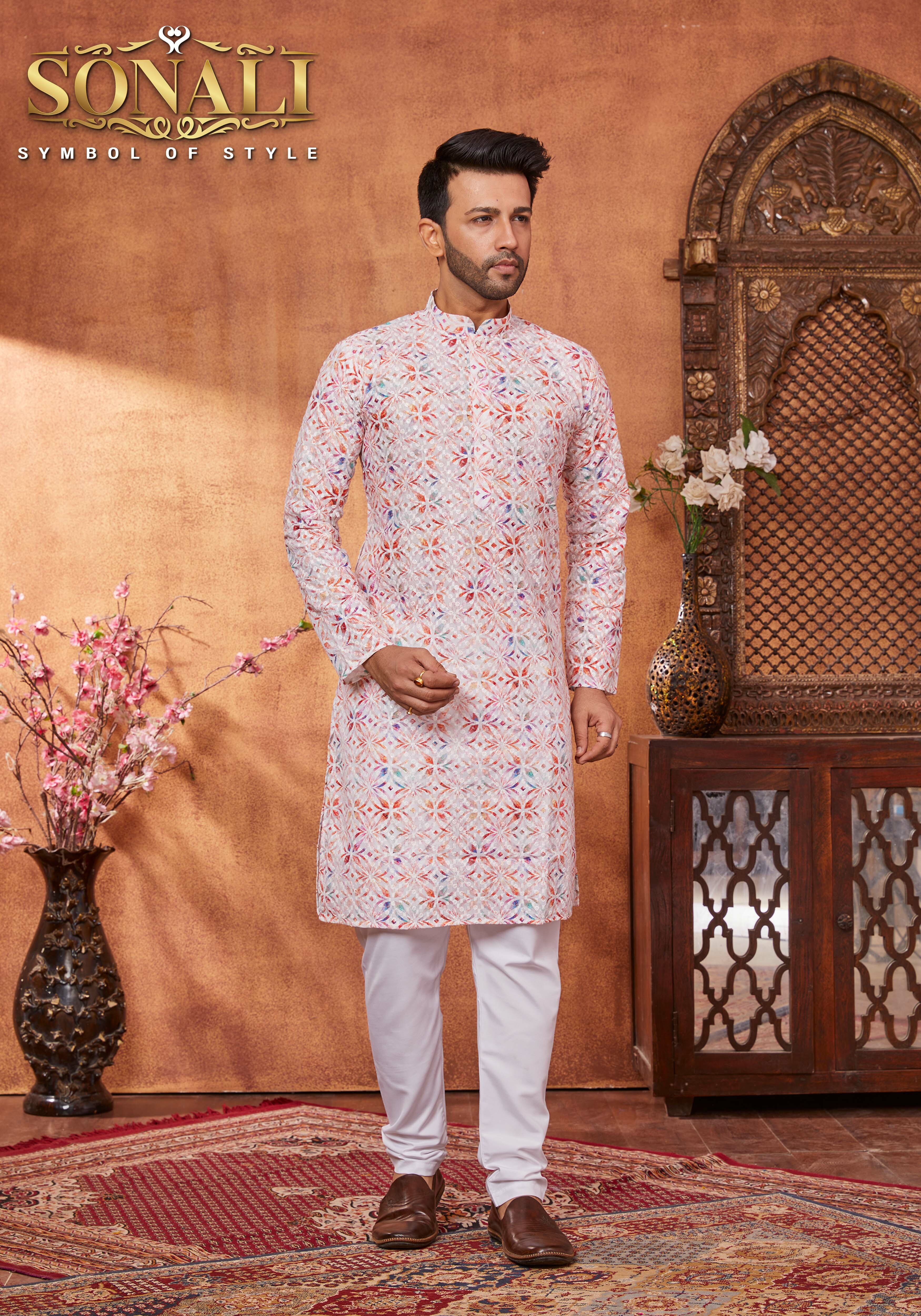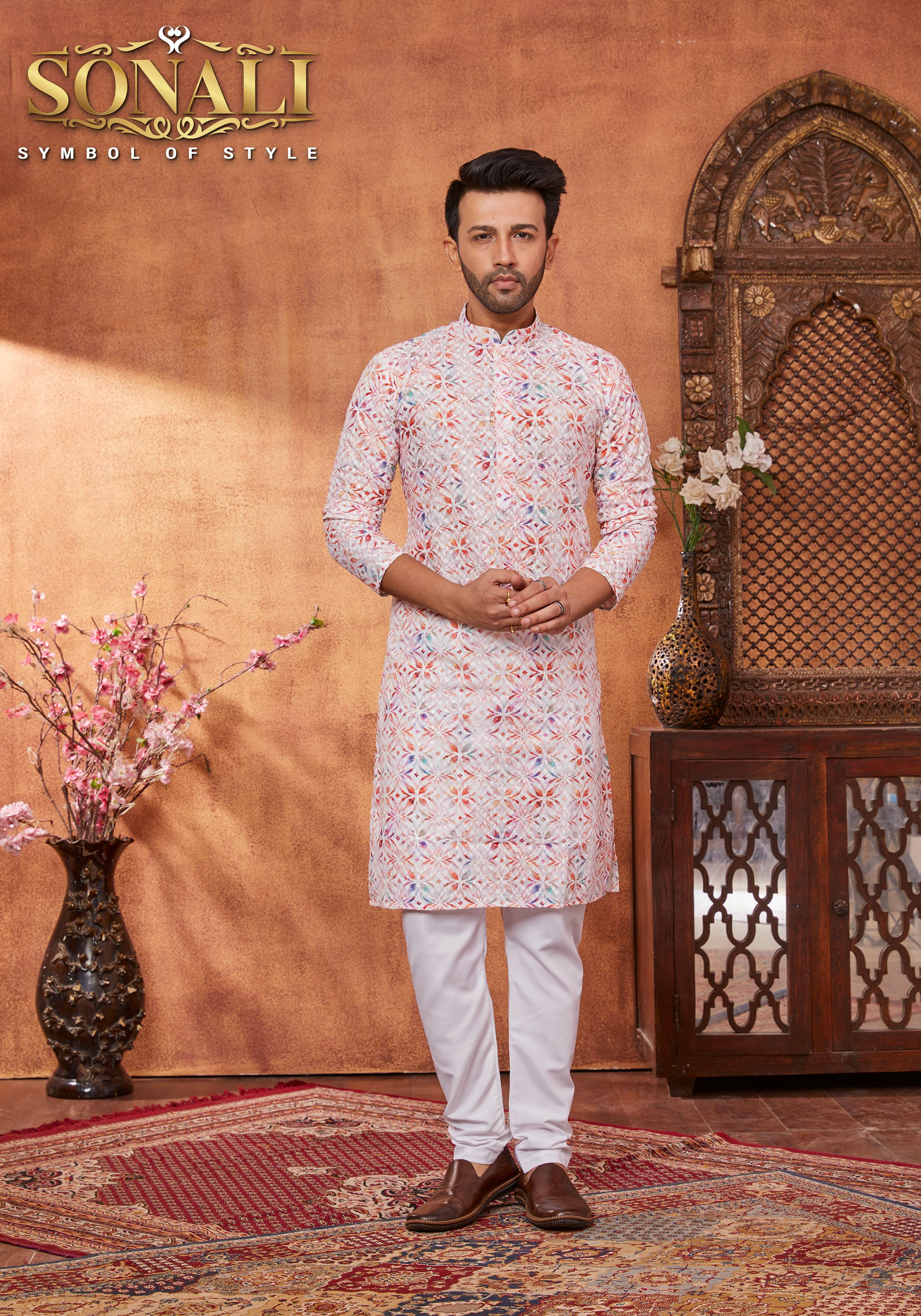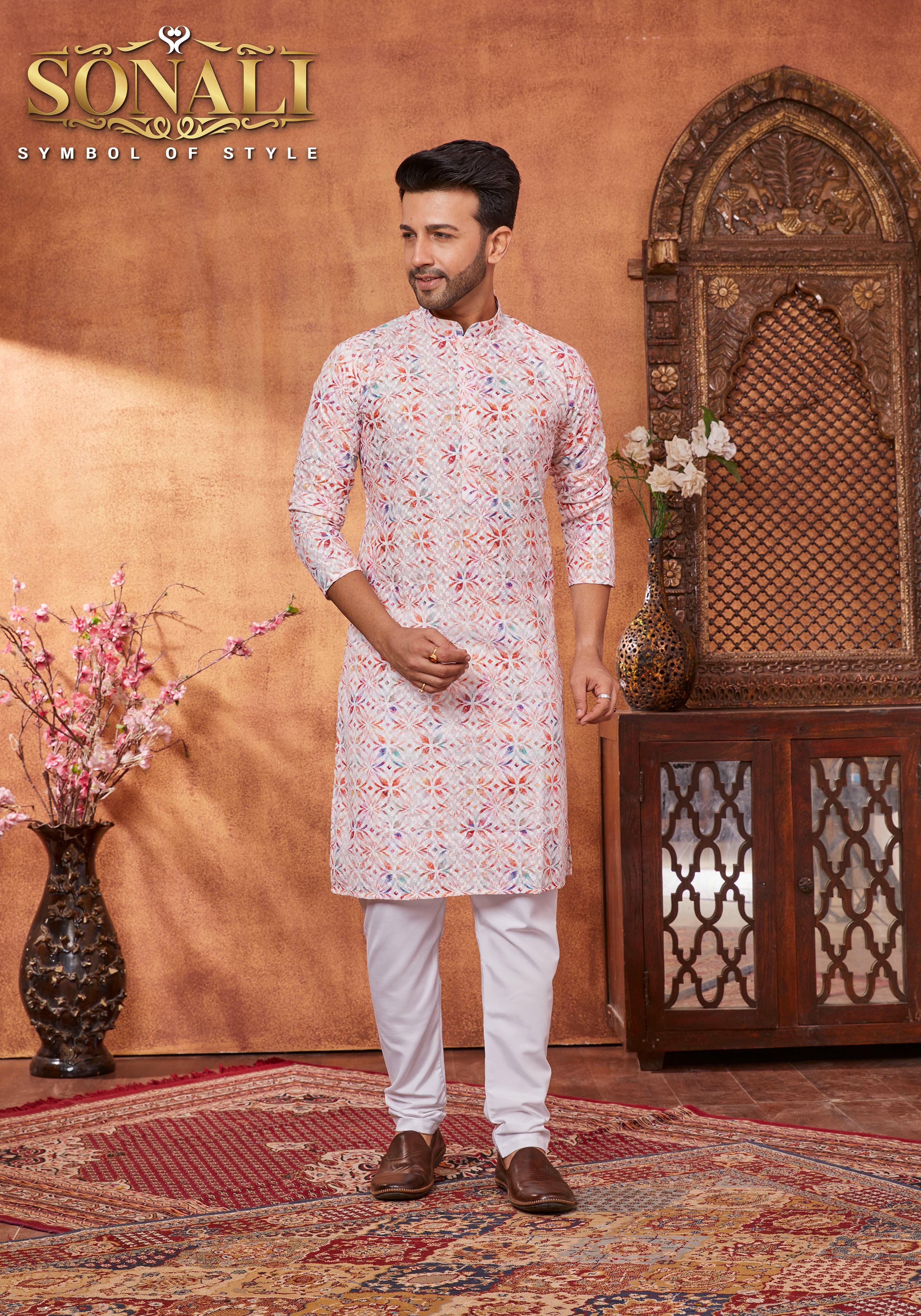 Sonali Premier Men's Lucknowi Suit with Sequins Men's Ethnic Wear Traditional Suit for Men Deepawali's Collection