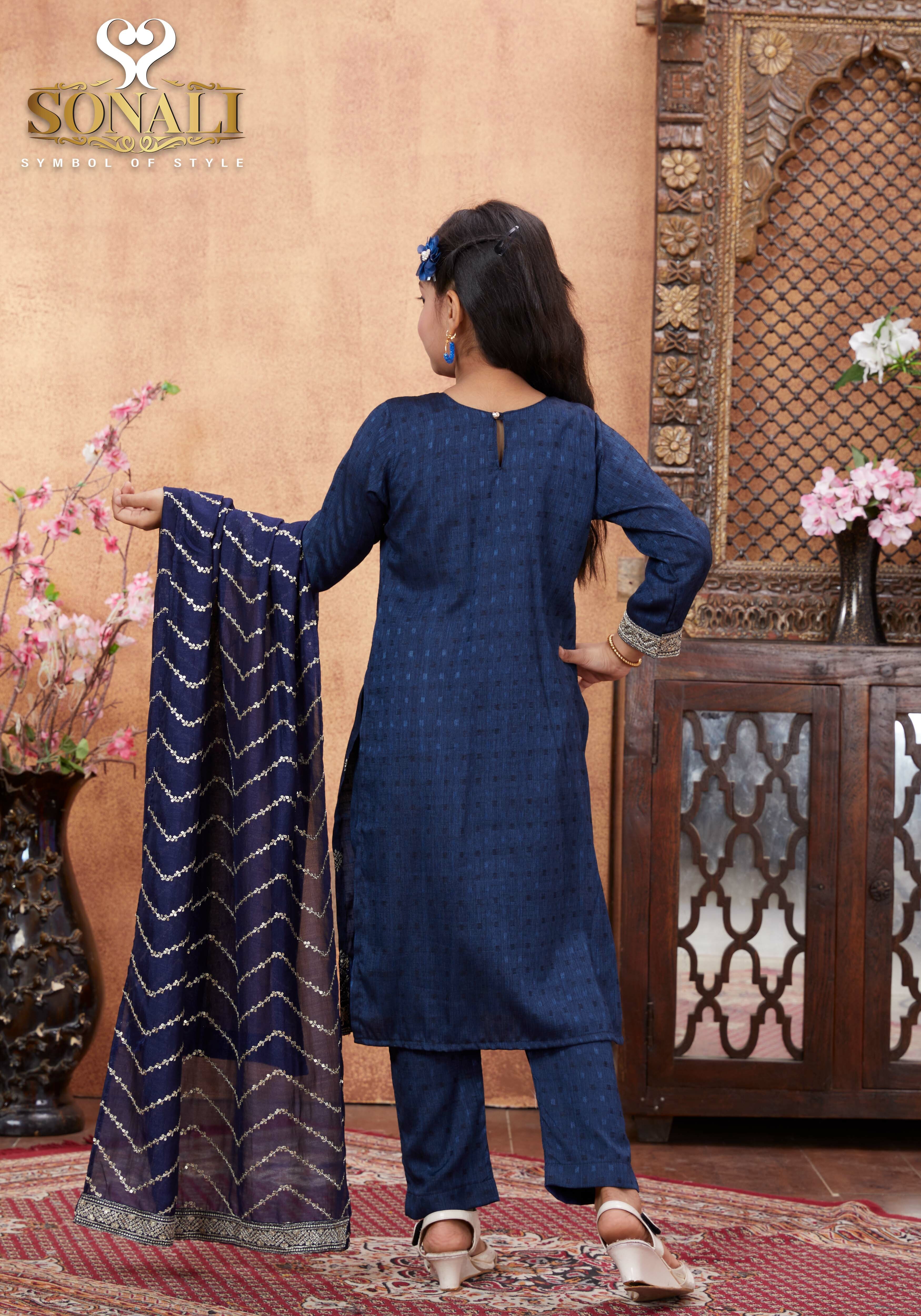 Sonali Premier Quality Blue Family Collection Men's & Boy's Shirt / Women's & Girl's Suit (Free Dupatta) - Q1806/Q1807/Q1808/Q1809