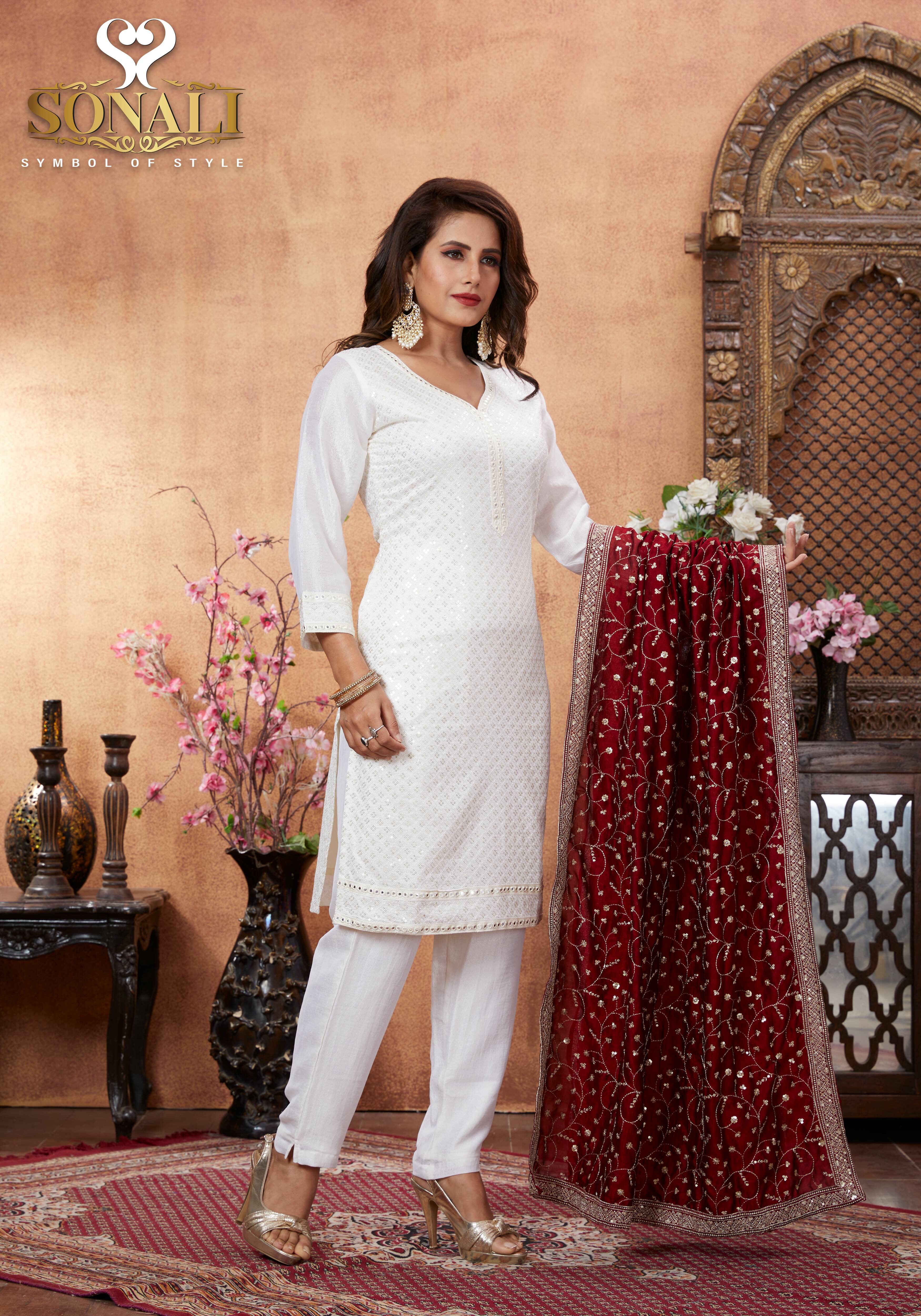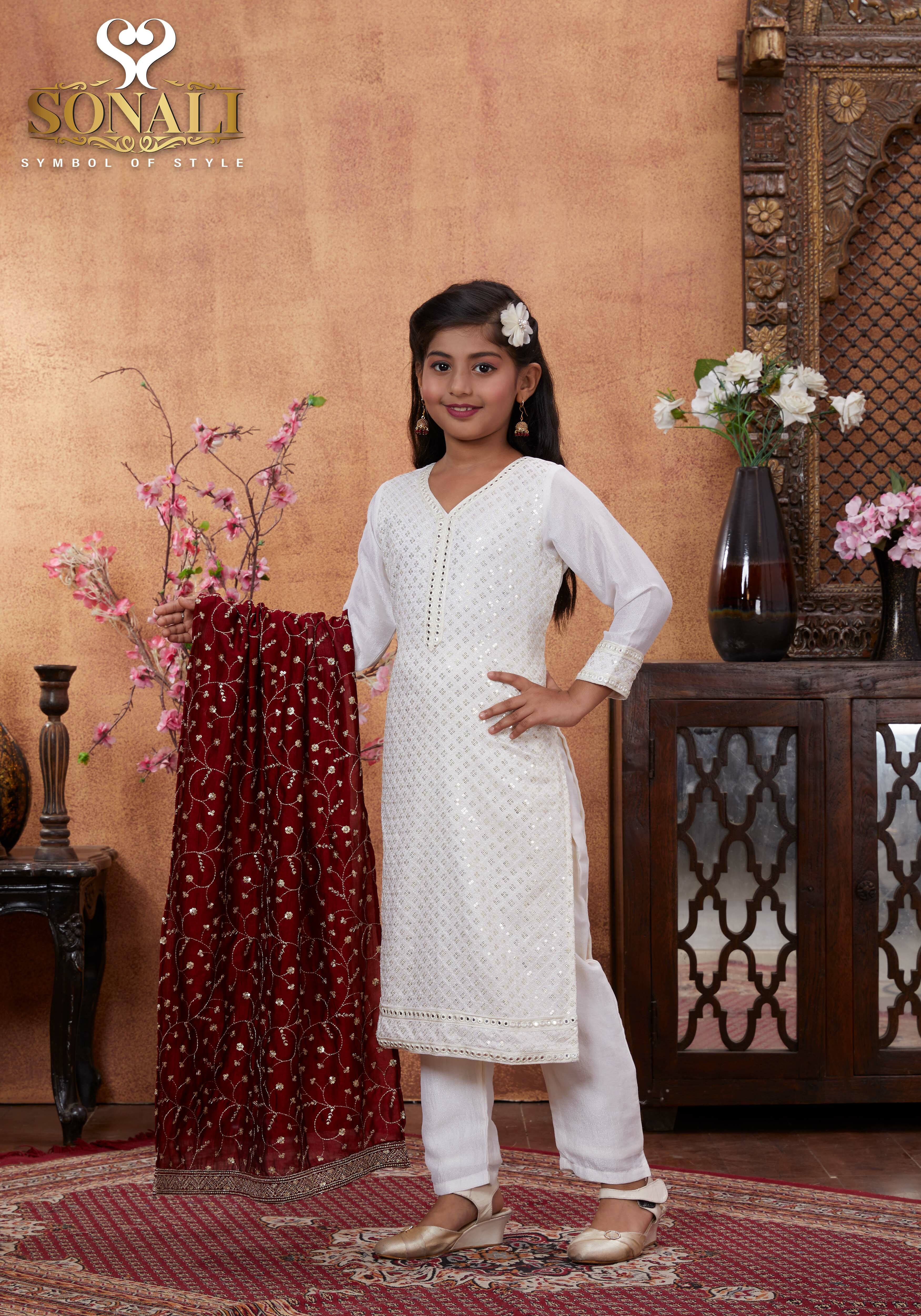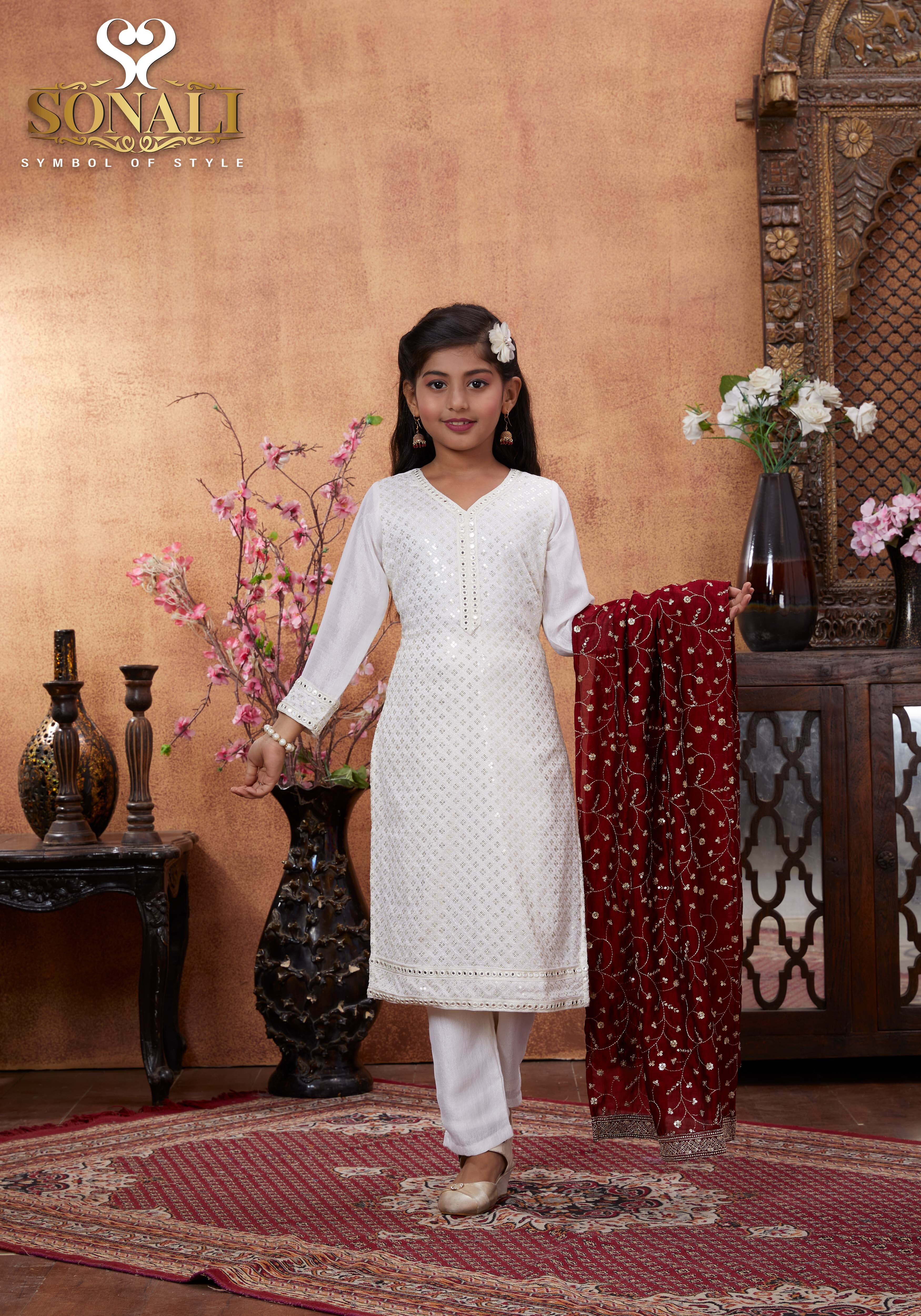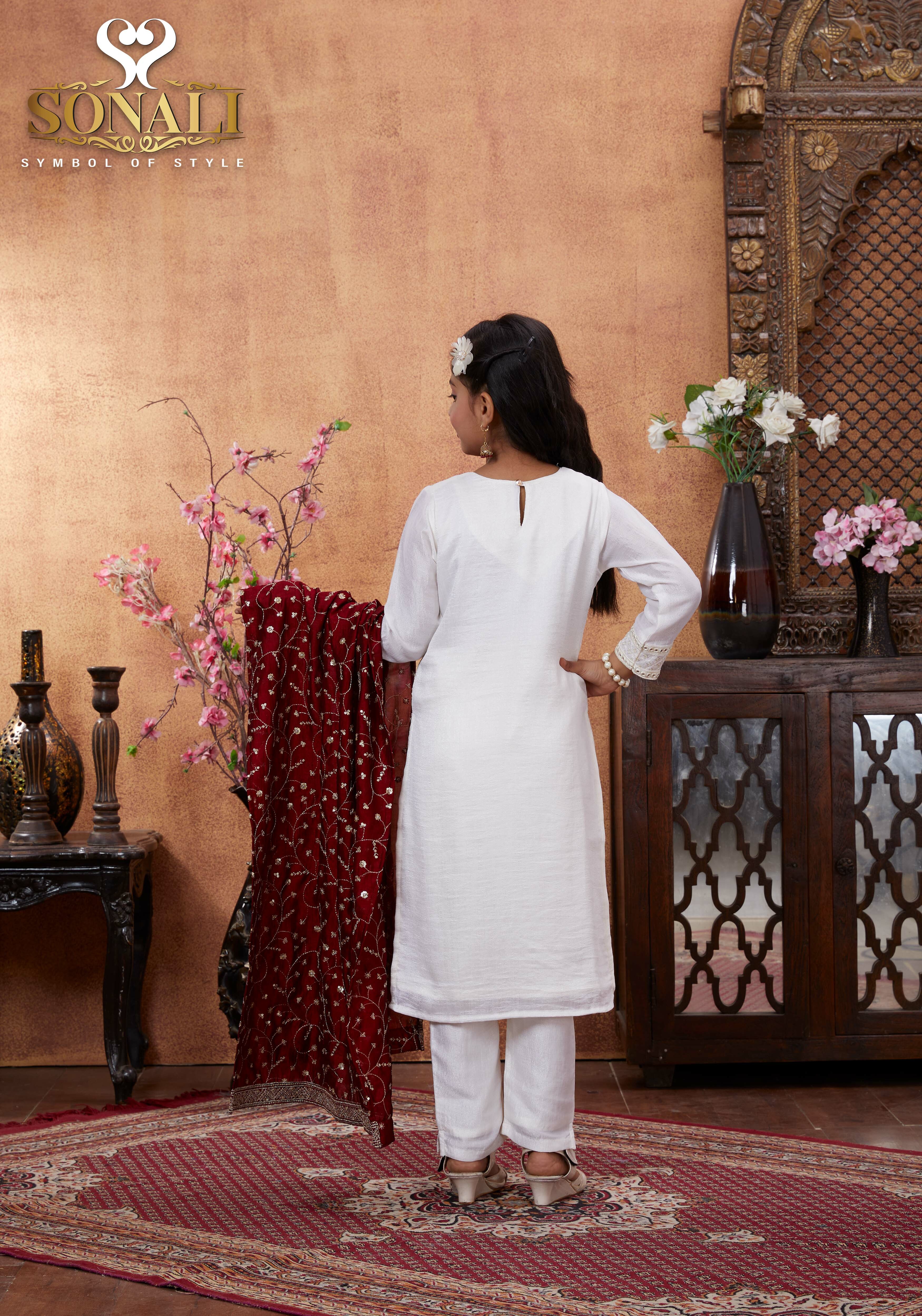Sonali Premier White Family Collection Men's Kurti / Women's Set / Wear Kid's Wear Girls Set / Boy's Kurti Set - Q1802/Q1803/Q1804/Q1805/Q1802A/Q1802B