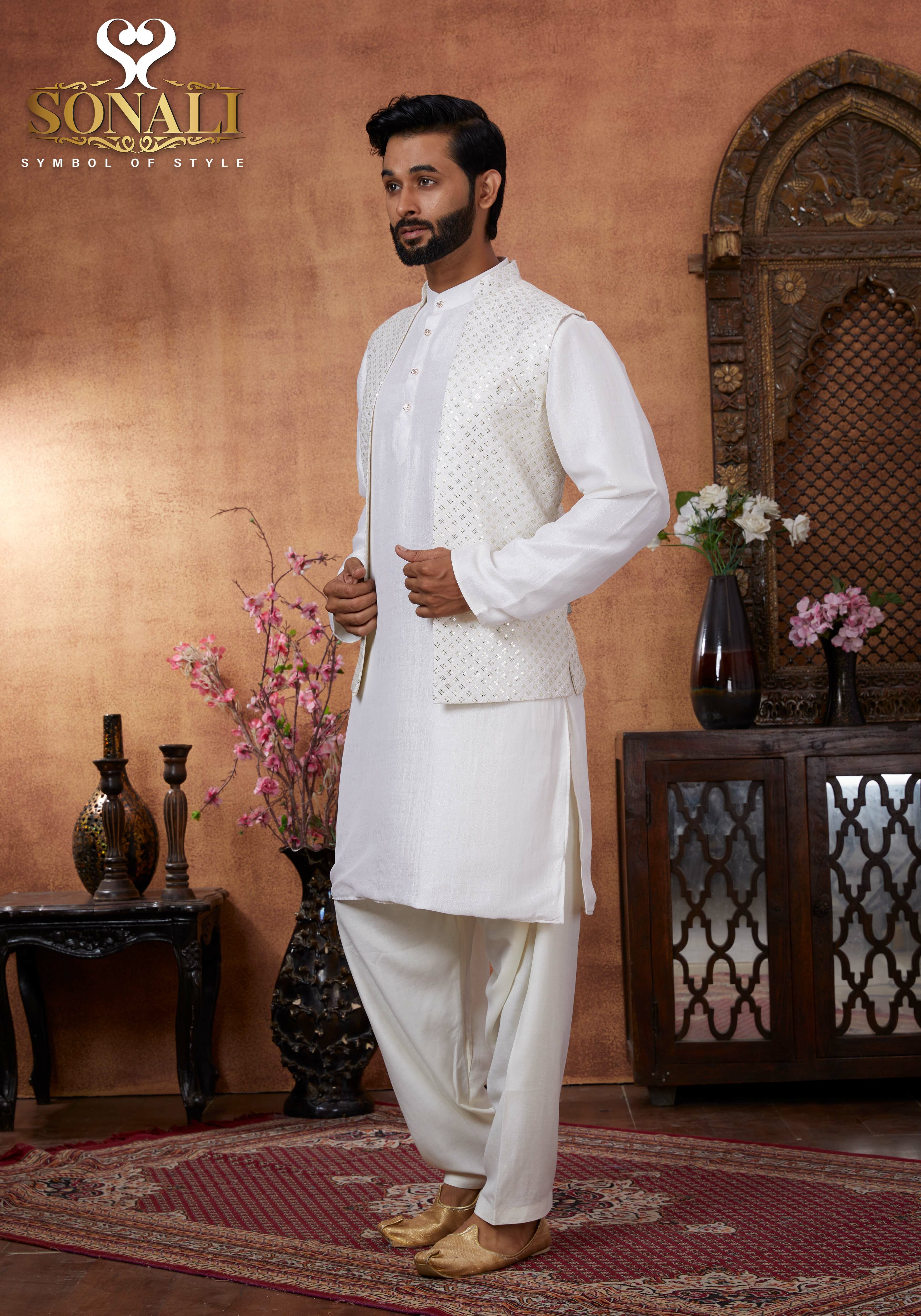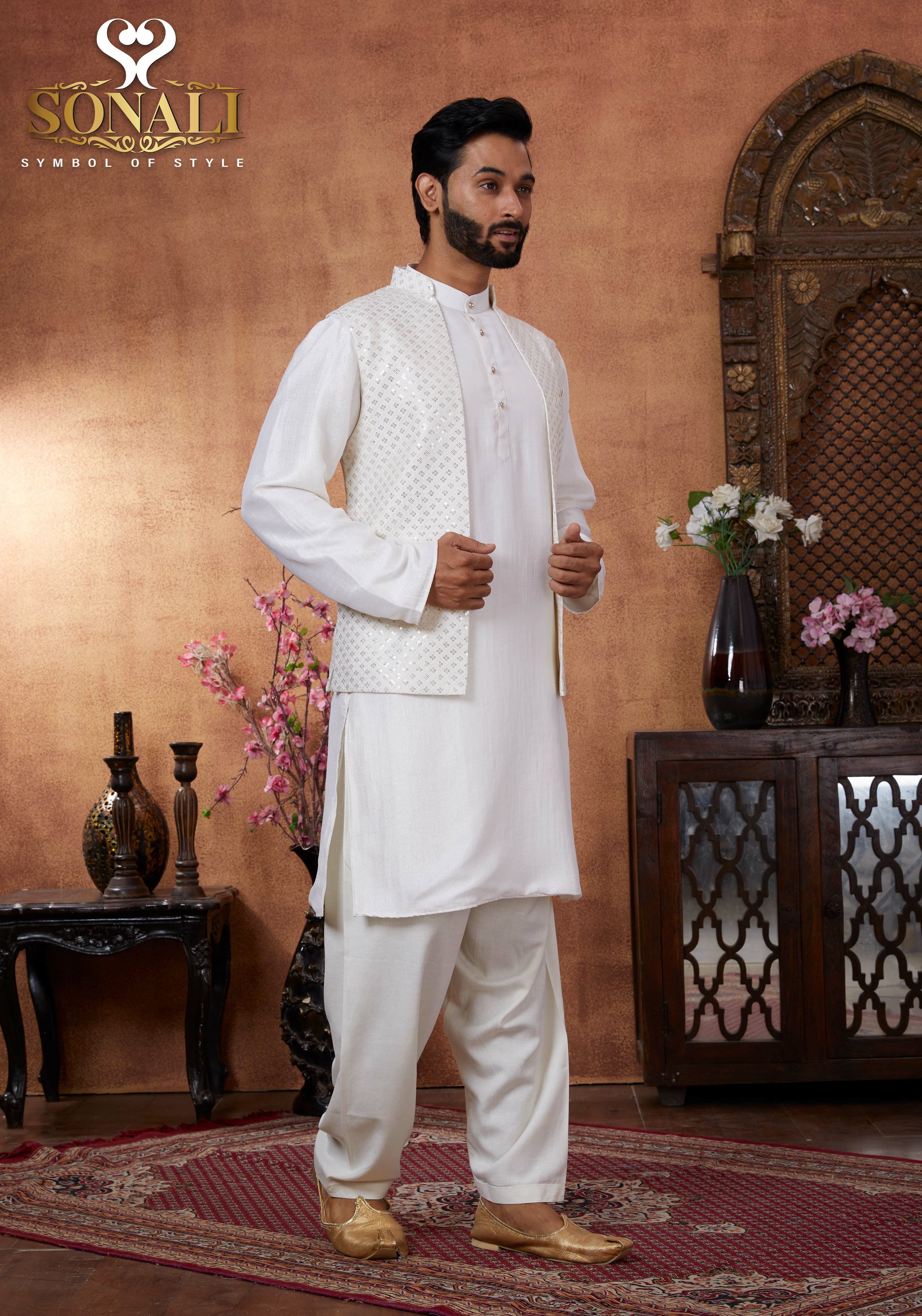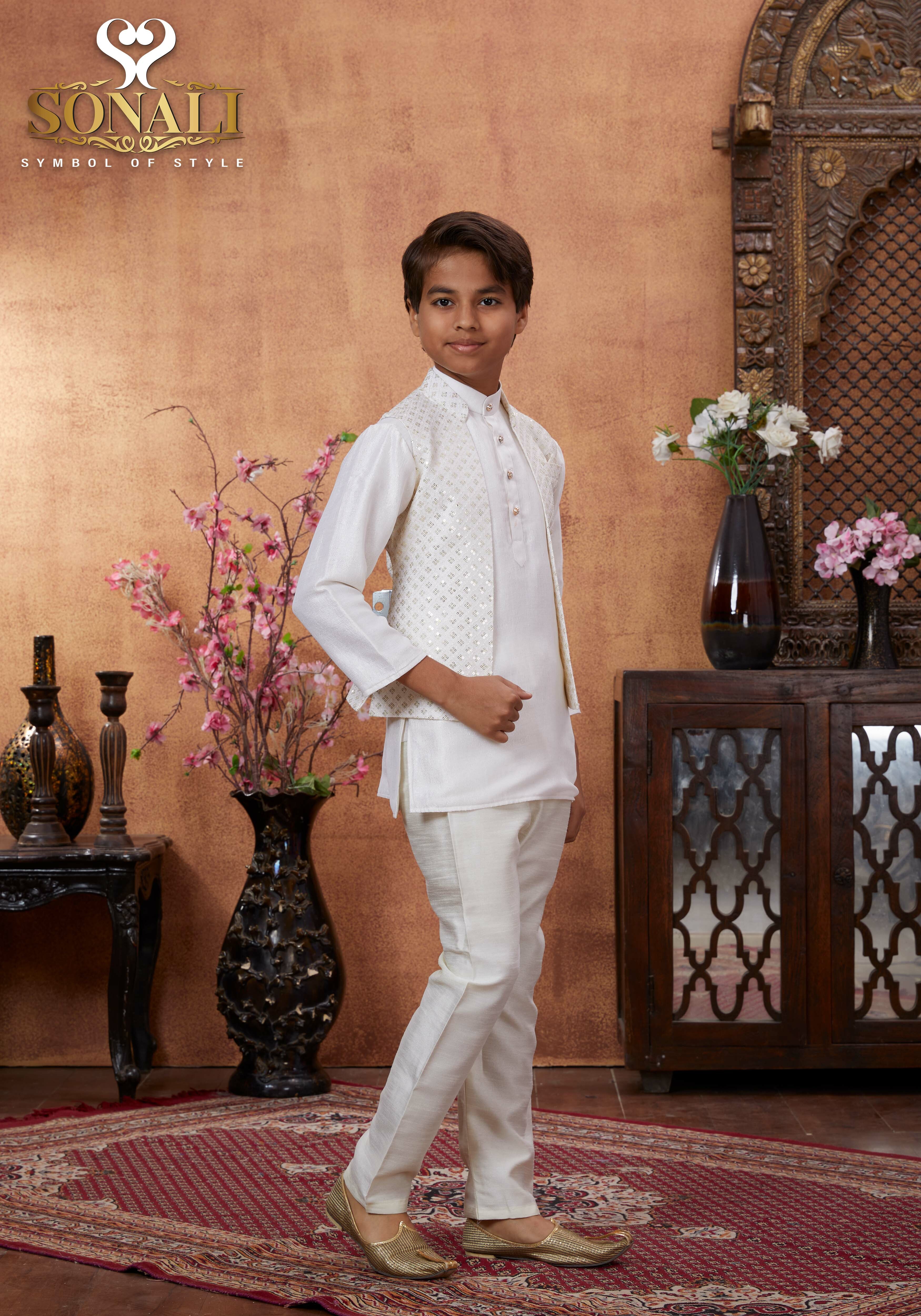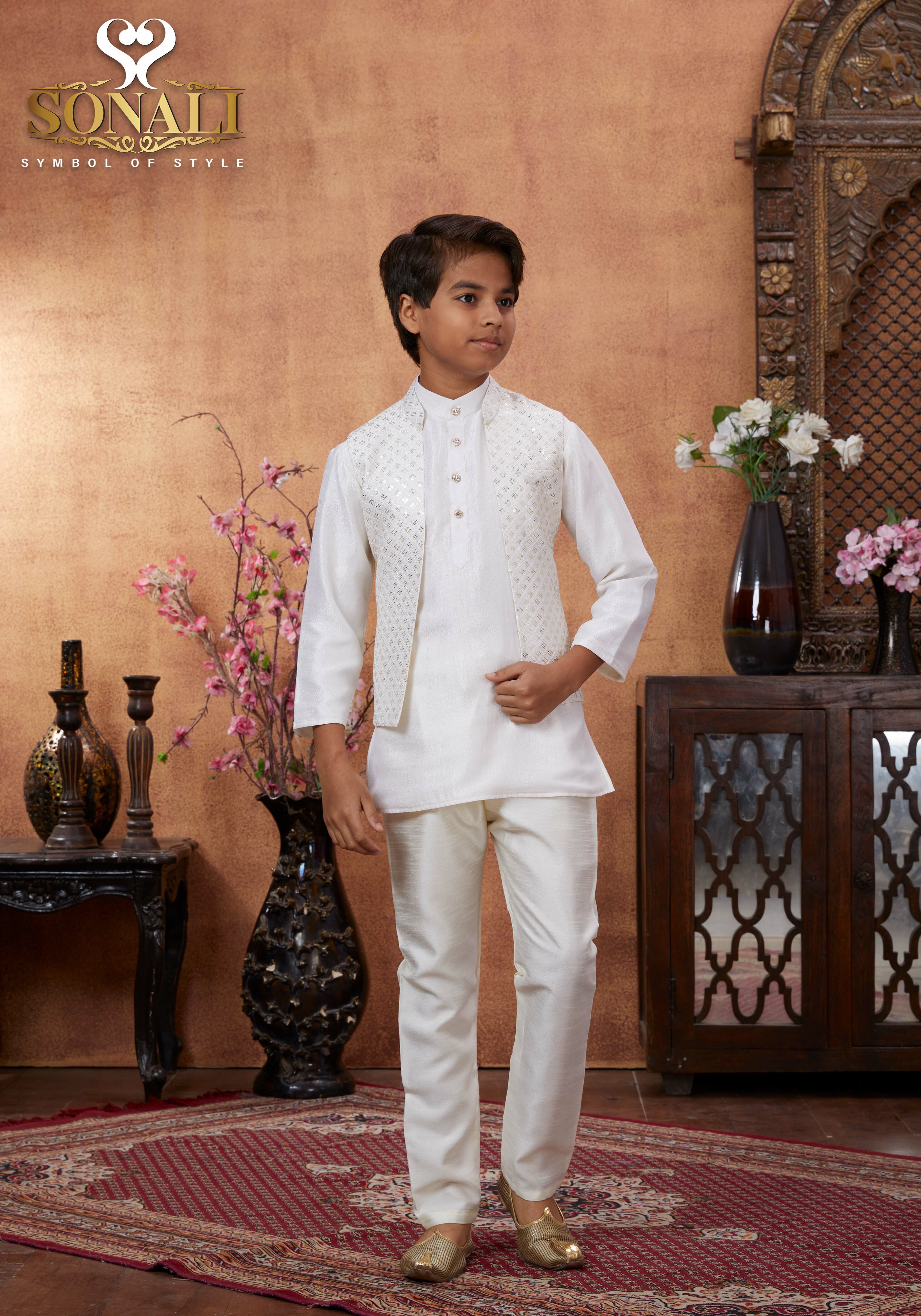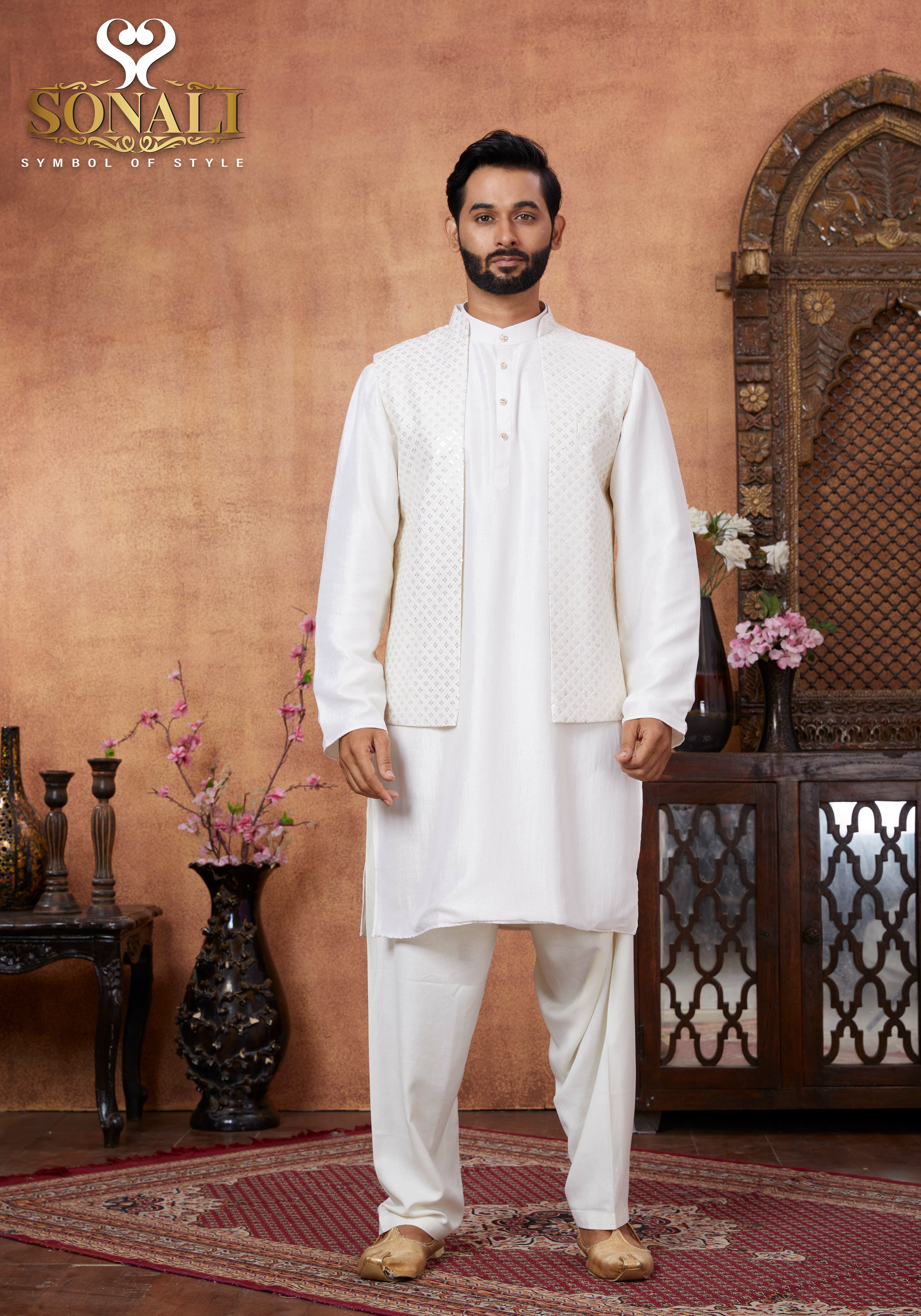 Sonali Premier White Family Collection Men's Kurti / Women's Set / Wear Kid's Wear Girls Set / Boy's Kurti Set - Q1802/Q1803/Q1804/Q1805/Q1802A/Q1802B