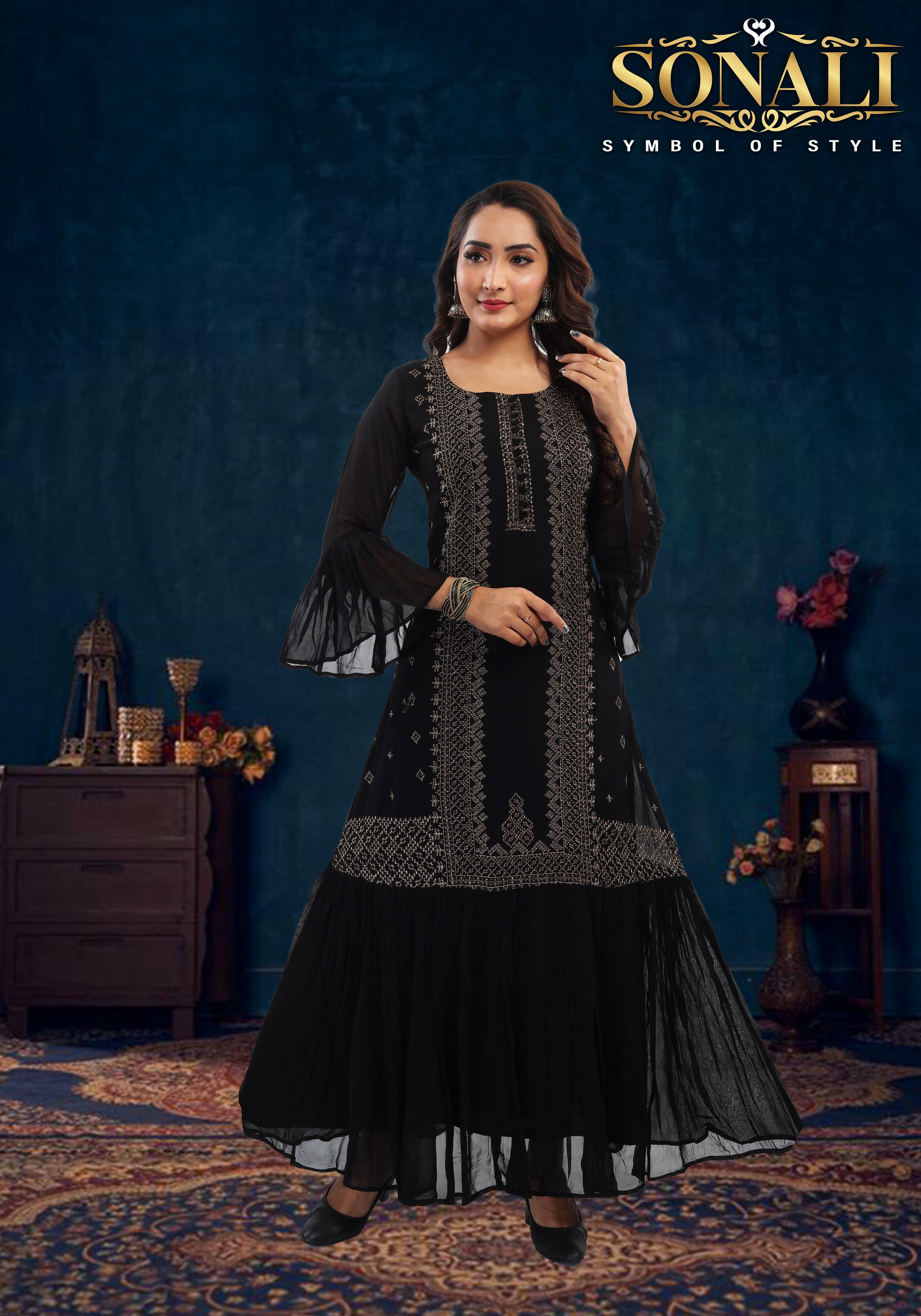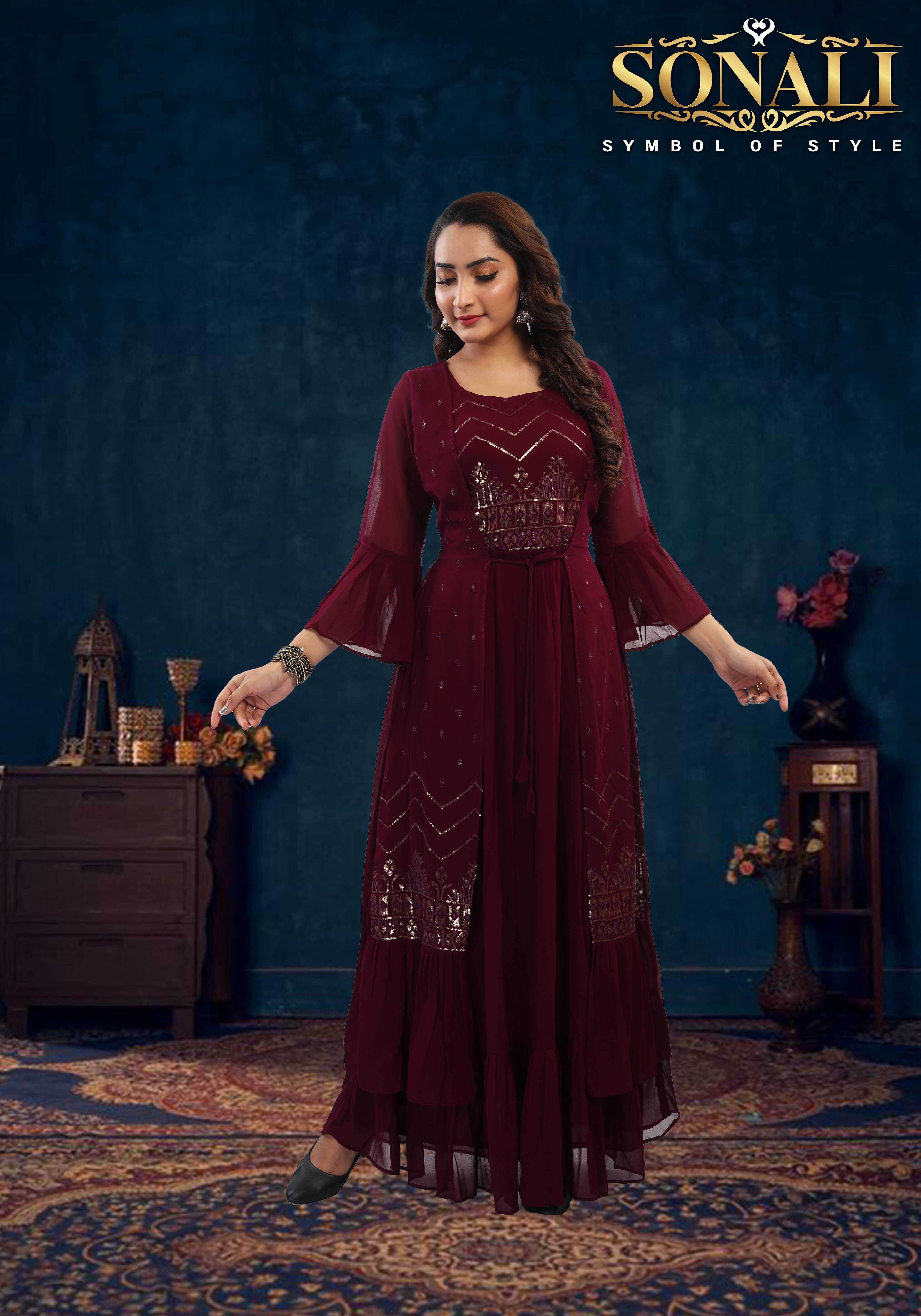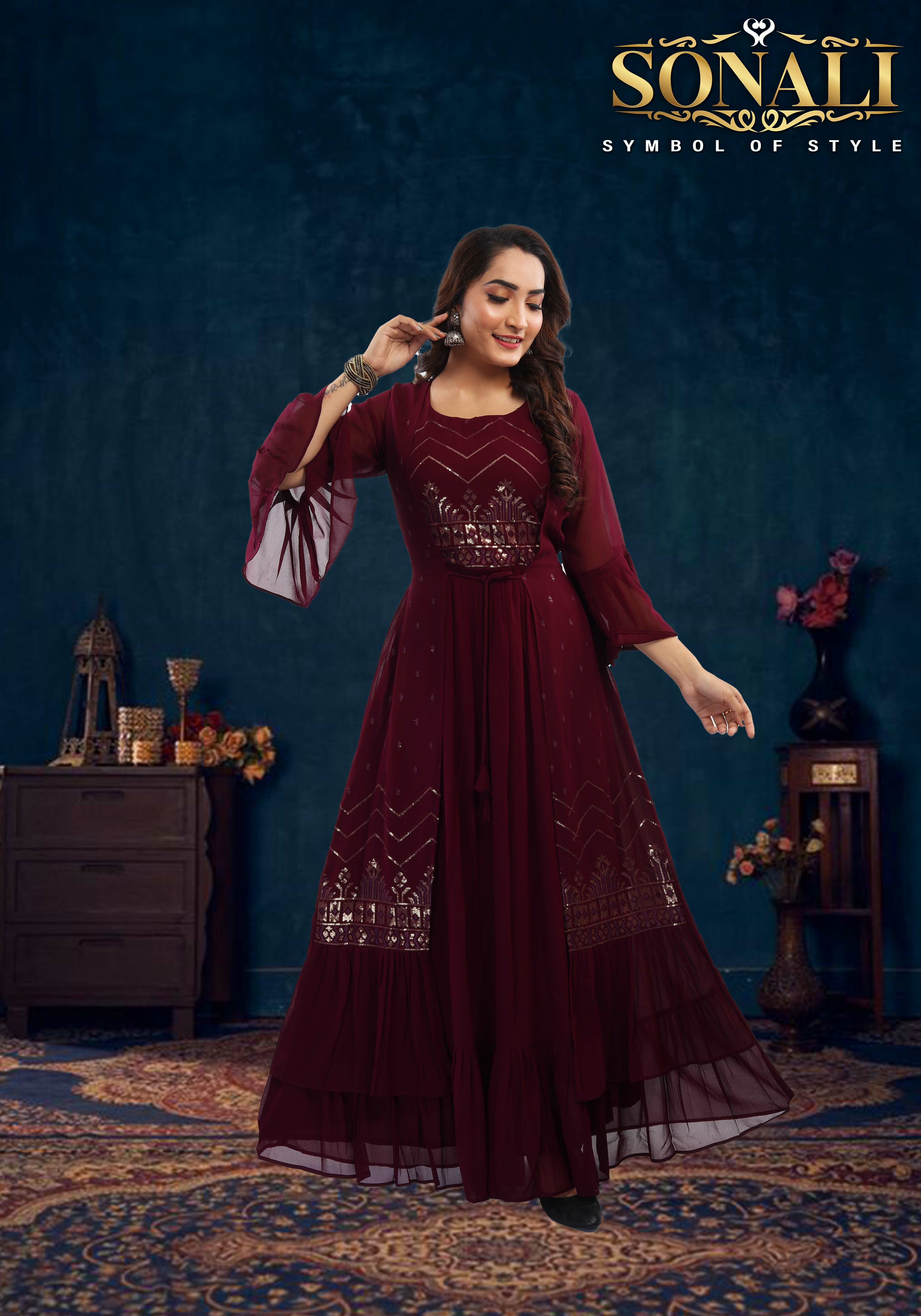 Sonali Premier Georgette Ladies Gown Long Dress For Women Indian Baju Long Gown Deepavali's Collection
