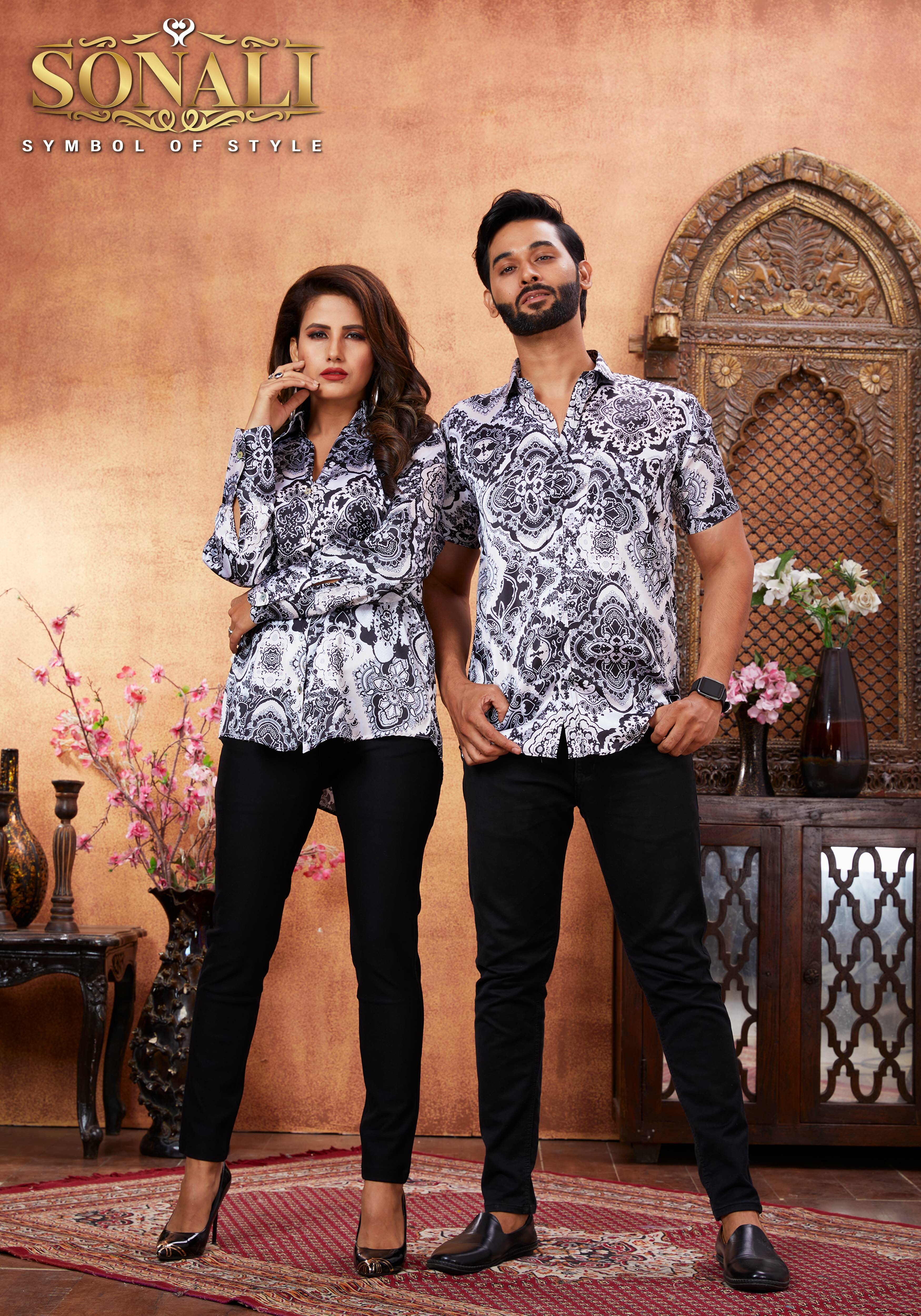 Introducing our latest Couples Collection! The New Arrival 2023 is here, and we are excited to present our Sonali Premier Couples Collection 2023 featuring the latest trends in fashion. Celebrate the season of lights with our Deepawali's Collection, made with premium quality fabric. The Couples Collection range is crafted with the finest fabrics and comes in a variety of styles and designs. Whether you prefer a classic look or a more modern, chic style, we have something for you. The New Collection 2023 is a must-have for anyone looking to stay on-trend. With our range of Shirts and Tops, you can complete any outfit effortlessly. This Collection is perfect for those looking to coordinate their outfits and create a cohesive look for family events or special occasions. All of our products are made with the highest quality materials, ensuring durability and comfort. Our attention to detail is what sets us apart from the rest, and we are proud to offer a diverse range of products that cater to every taste and style. Order now and experience the best of Online Fashion. Our collection is sure to impress, and we guarantee that you will love every piece. So why wait? Shop now and upgrade your wardrobe today!