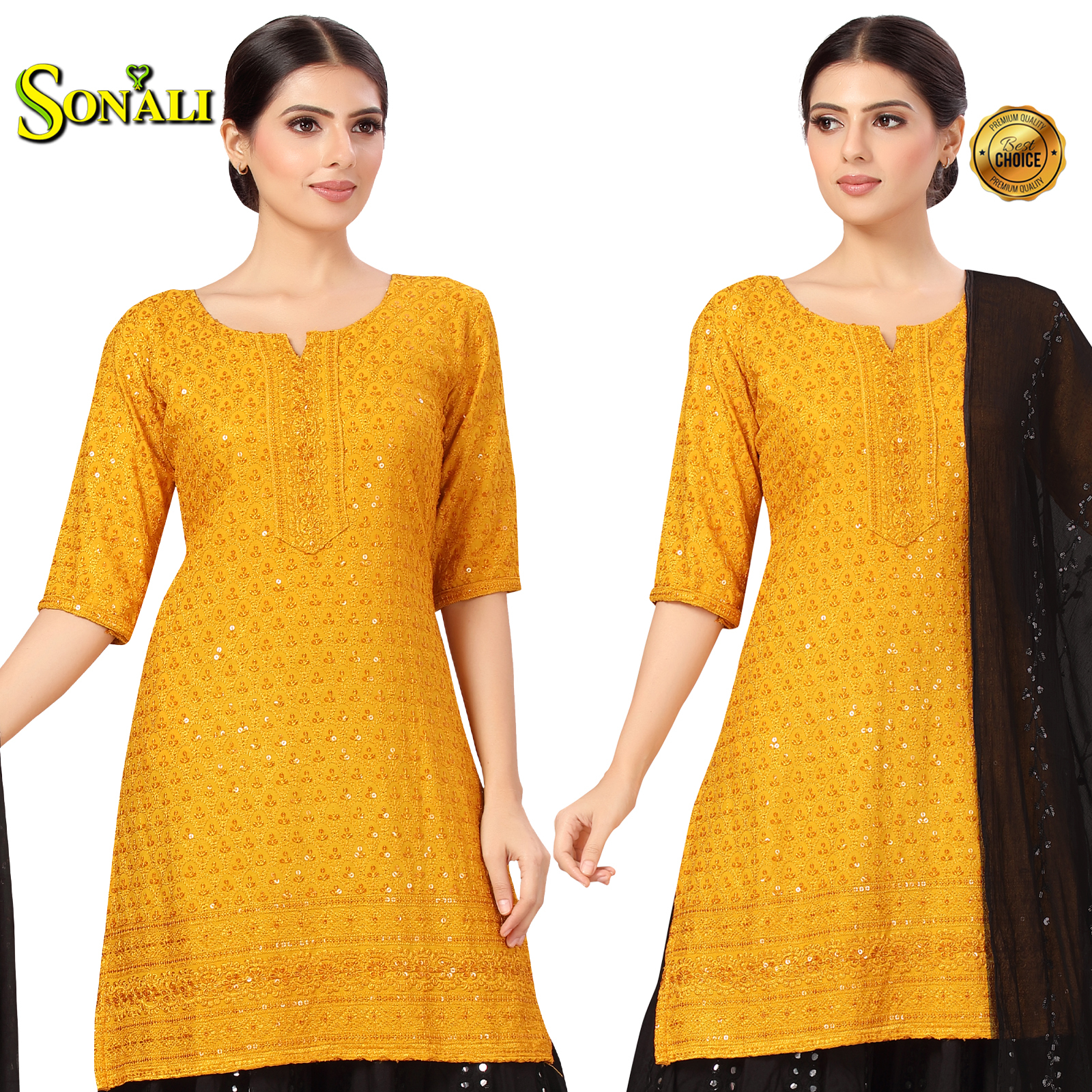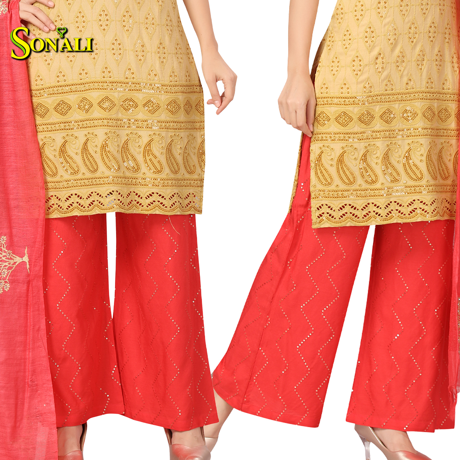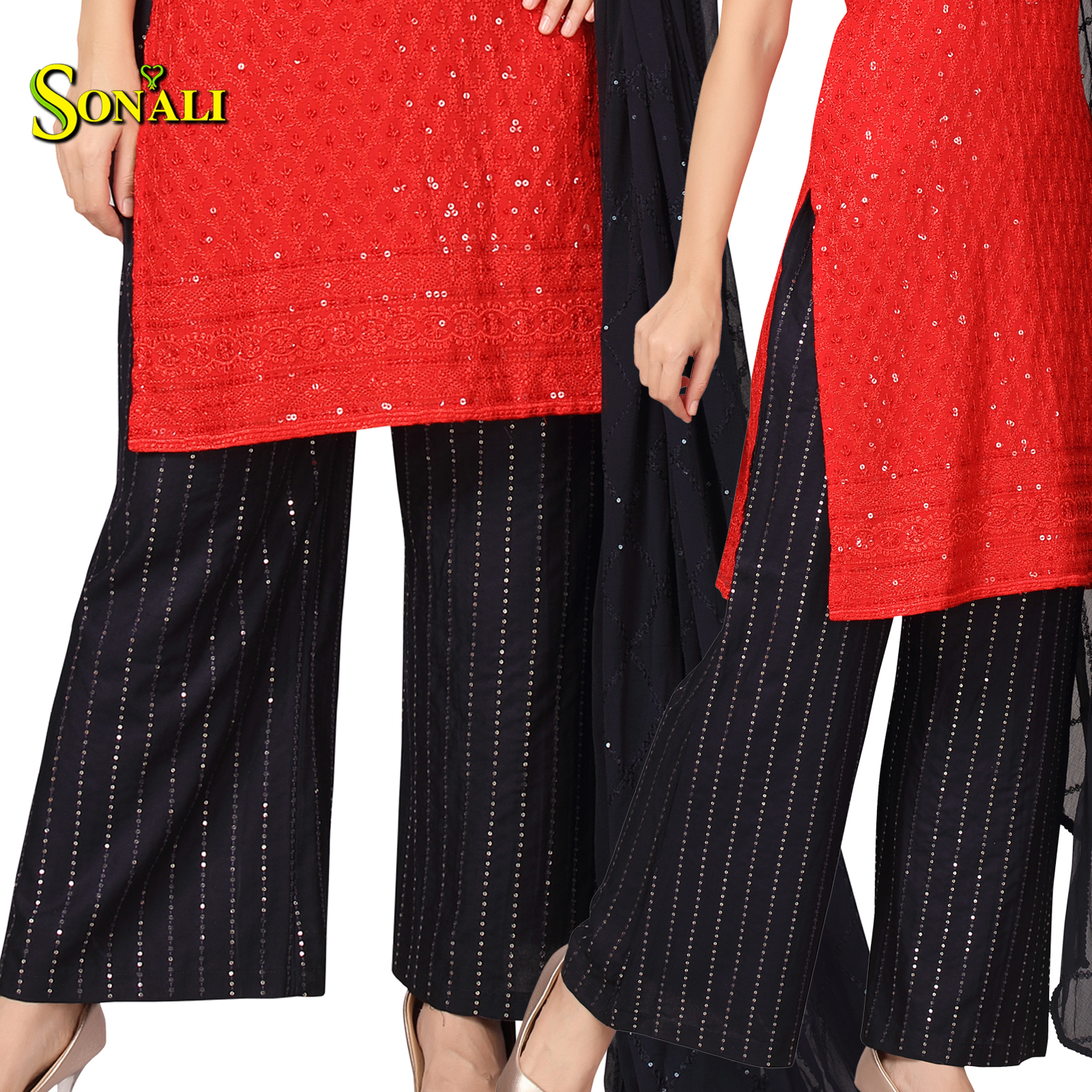 Sonali Premier Quality Women's Cool Rayon with Front & Back Sequins Tops with Pocket and Palazzo - Q1777/Q1779A/Q1779B/Q1778/Q1780